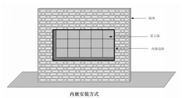 1)整個顯示屏體嵌入墻體,顯示平面與墻面在同一水平面。
