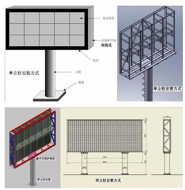 立柱式安裝方式有多種,一般作戶外廣告使用,以下:
