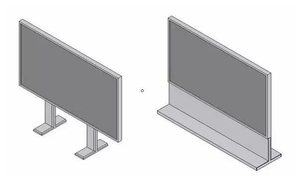 2)屏體顯示面積小,一般不留維修通道空間,整屏取下進行維修,或者做成折疊一體式框架。
