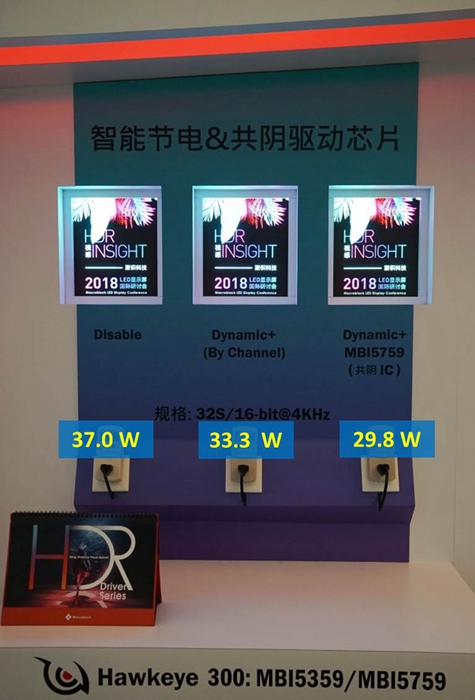 聚積今年亦展出高集成共陰驅(qū)動方案-MBI5759的模塊,并直接與高集成共陽驅(qū)動方案-MBI5359進行節(jié)電比較。