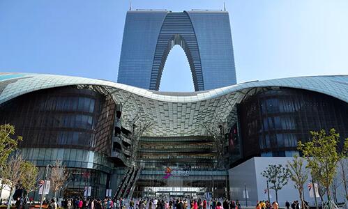 蘇州中心位于蘇州工業(yè)園區(qū)金雞湖西側(cè),居蘇州市域CBD核心位置,于2012年啟動建設(shè),總建筑面積113萬平方米,項(xiàng)目包含高層塔樓、大型商業(yè)建筑及周邊市政配套工程,集商場、辦公樓、公寓、酒店等多種業(yè)態(tài),是華東地區(qū)單體規(guī)模最大的商業(yè)綜合體,已成為蘇州的城市新地標(biāo)。其中商場建筑面積約35萬平方米,采用“未來之翼”的設(shè)計理念,由7000塊玻璃組成的巨型曲面采光頂,猶如一只棲息于金雞湖畔的鳳凰,欲展翅翱翔,商場兼容國際大牌旗艦、時尚精品、購物休閑、兒童娛樂、文化體驗(yàn)等多項(xiàng)功能于一體,是蘇州乃至華東區(qū)的時尚生活必選地。
