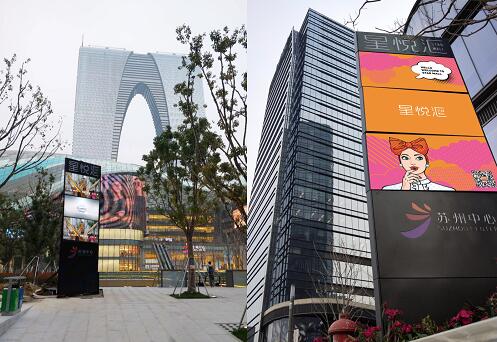 作為城市新名片,集人文、自然、建筑于一體的蘇州中心自然少不了優(yōu)質(zhì)LED大屏的添彩,由聯(lián)建光電為蘇州中心商場打造的六套LED大屏,包括一套高清戶外LED廣告屏、一套魔方柱LED旋轉(zhuǎn)屏和四套室內(nèi)LED大屏,,其精良的顯示效果是商場品牌形象展示的絕佳陣地。