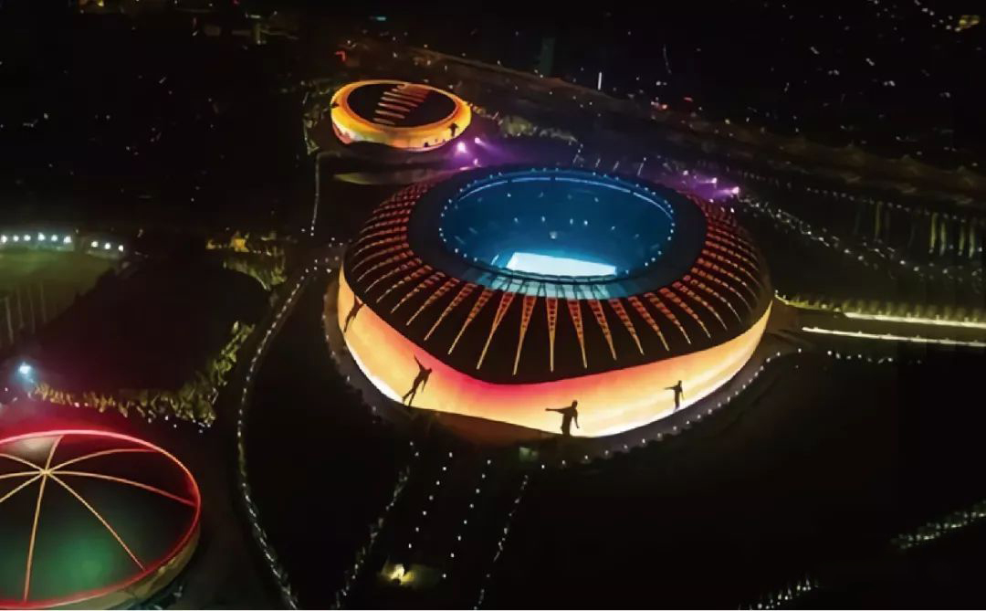 天津奧體中心體育場是舉辦2017年天津全運會賽事和開幕式的主場館,場館外立面以燈光內透為照明手法,采用二次封裝Φ50DMX LED點光源安裝于弧形玻璃幕墻后,圍繞館身形成一面巨型的弧形媒體屏。燈光與臨近游泳跳水館、體育館燈光經 智能DMX控制系統(tǒng)統(tǒng)一控制,可在聯(lián)動控制和單獨控制之間自由切換,滿足不同場景下各場館的亮燈需求。