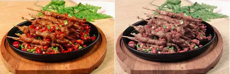 大伙兒應(yīng)該能夠觀察到,在不同的光源下,同一盤鐵板串串、同一條裙子、同樣的水果,呈現(xiàn)的顏色卻大不相同!這就涉及到了光源的顯色性問題啦!